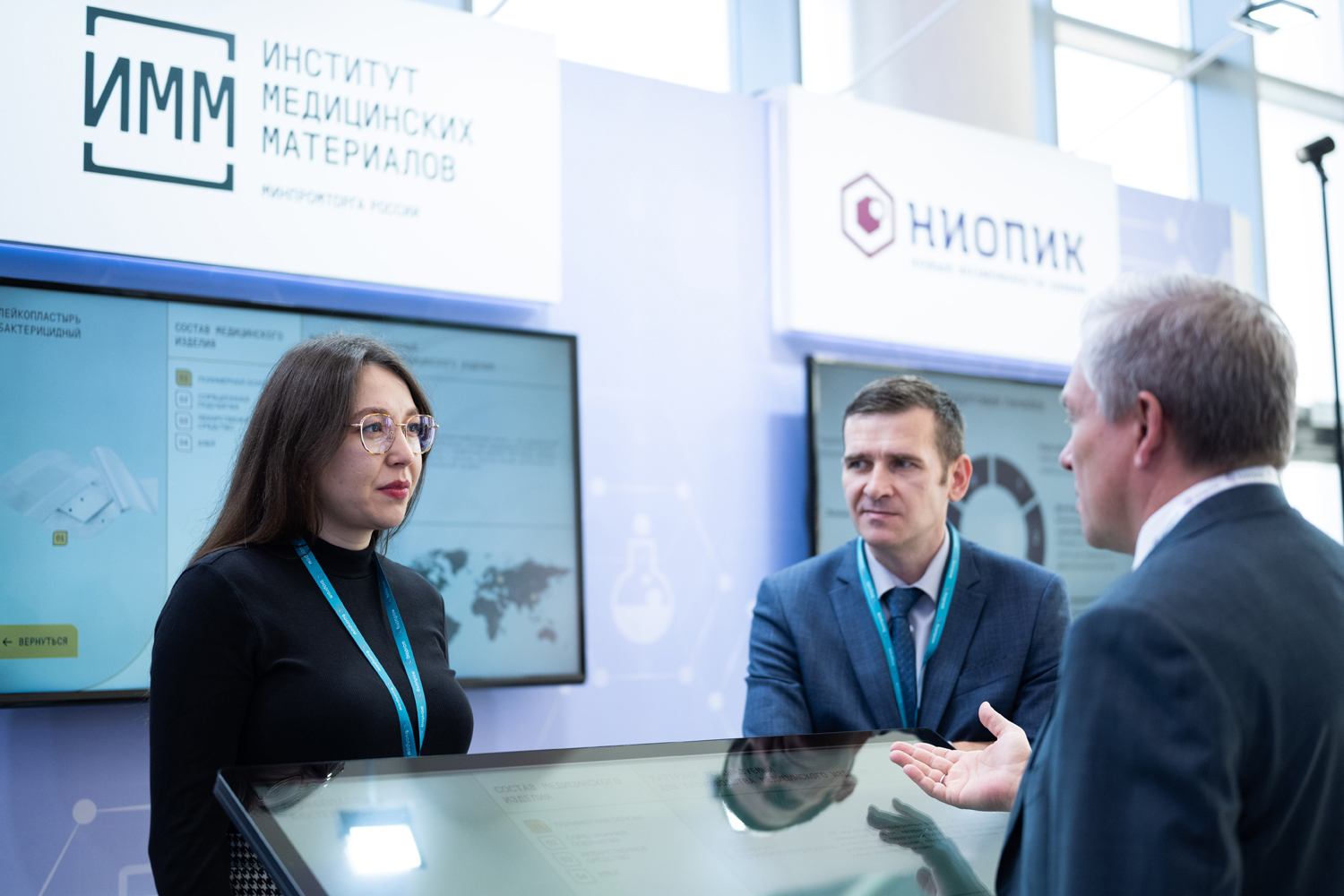 Институт также принял участие в выставочной экспозиции и на своем стенде продемонстрировал интерактивную панель с информацией об основных группах российских медицинских изделий, о сырье, материалах и комплектующих, которые применяются для такого производства. ФГАУ «ИММ» на постоянной основе собирает и систематизирует эти сведения, что помогает компаниям-производителям формировать кооперационные цепочки для обеспечения устойчивого развития производства медицинских изделий в России.